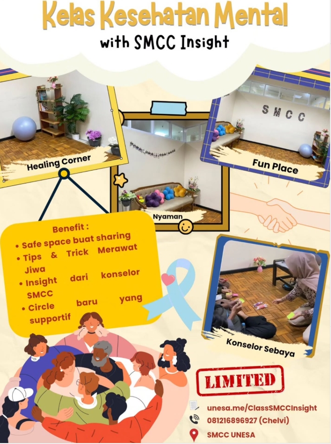 Surabaya, 6 Oktober 2025 — Memasuki awal bulan Oktober yang identik dengan meningkatnya tekanan akademik, SMCC UNESA menyelenggarakan kegiatan Mental Health Class sebagai r