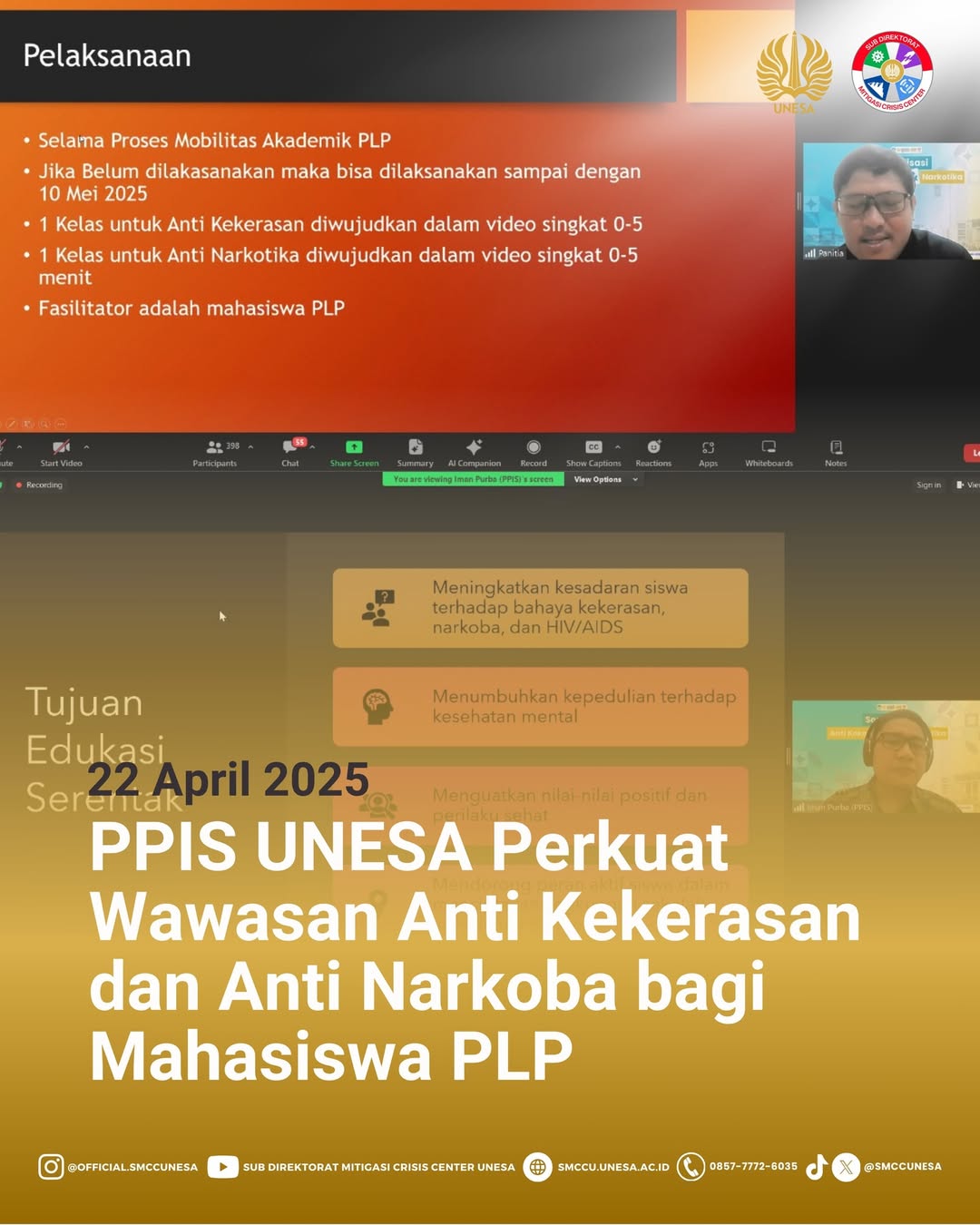 Halo mahasiswa Unesa! Gimana nih kabarnya? Sebagai bagian dari kemeriahan agenda tahunan Pekan PPIS 2025, Subdirektorat Satuan Mitigasi Crisis Center (SMCC) Unesa, bekerja sama dengan Bimbingan Konseling (BK) Akademik Unesa, dengan b